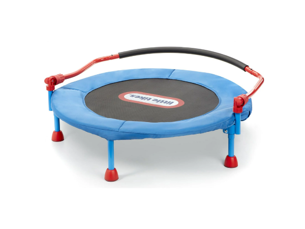 This portable mini trampoline from Little Tikes lets the littles bounce indoors or out, anytime active play is needed. The 3-foot folding trampoline is easy for little hands to carry and set up wherever the spirit moves them. Toddlers can bounce off some wiggles, or just bounce for the joy of bouncing!