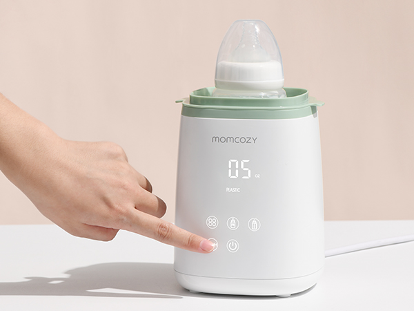 The Momcozy Baby Bottle Warmer warms milk from cold to the exactly right temperature in 2-5 minutes, helping to preserve nutrients. It fits most bottle material types (glass, plastic and silicone, up to 11 oz volume). It also quickly heats up food to the most digestible temperature for a baby’s stomach.