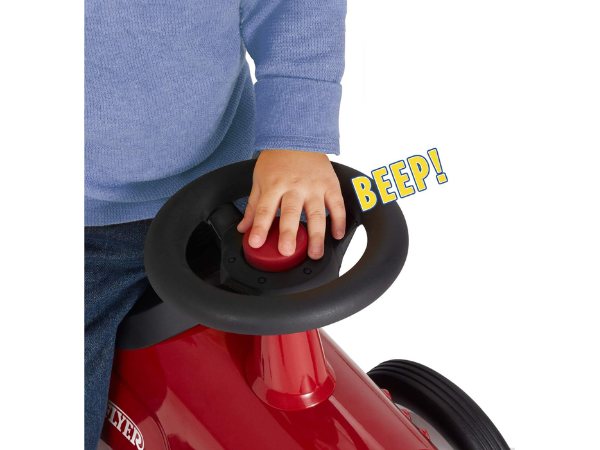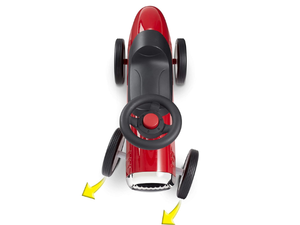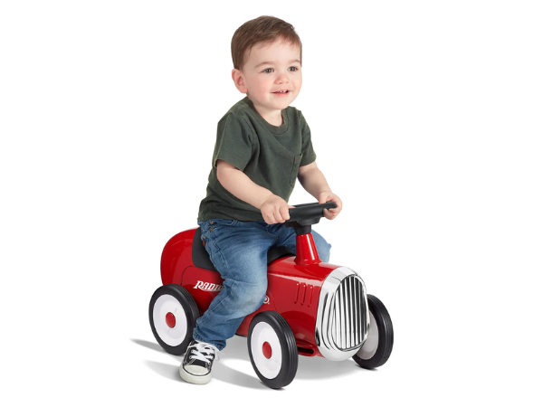 This signature car combines a classic design with a modern twist so your child can cruise around in style. As your toddler drives around on their track of choice, the roadster features durable rubber tires that are optimally designed for a quiet riding experience. But no worries, you’ll definitely be able to hear them too, as they’ll be honking away with the car’s built-in horn. Not only is the roadster fun and entertaining, but it also serves an educational purpose. The car’s working steering function can help assist in developing motor skills as they continue to learn and grow. Plus, the built-in comfort seat provides extra back and ergonomic support, giving your child a smooth ride throughout.