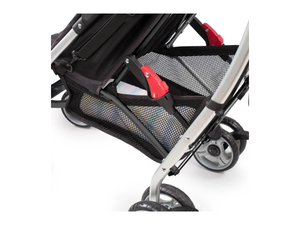 Some of the features in this lightweight stroller include: a large seat area, 4 position recline, 5-point safety harness, anti-shock front wheels, lockable rear wheels, adjustable and removable canopy with flip out sun visor, easy compact fold with carry strap and auto lock, extra-large storage basket, rear storage pocket, cup holder and more.